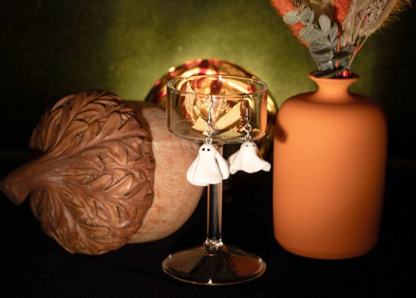 Happy Haunts ~ handmade clay ghost earrings on nickel~free silver hooks or lever back, Lightweight, minimal, and the perfect everyday nod to Halloween.