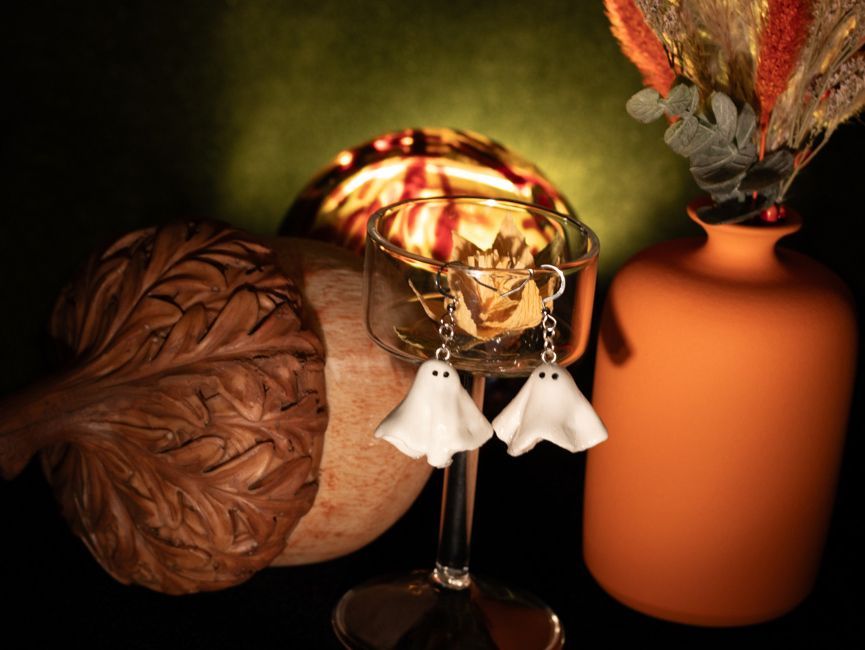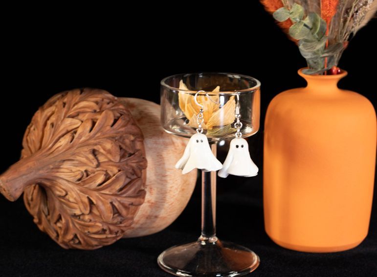 Happy Haunts ~ handmade clay ghost earrings on nickel~free silver hooks or lever back, Lightweight, minimal, and the perfect everyday nod to Halloween.